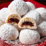 Delight in these Filled Almond Snowball Cookies, a tender and buttery treat filled with luscious raspberry jam and the subtle nutty flavor of toasted ground almonds. Perfectly coated with powdered sugar, these cookies offer a melt-in-your-mouth texture and a festive appearance ideal for sharing or gifting.