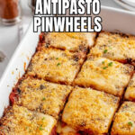 These pinwheels go great with a simple green salad dressed with lemon vinaigrette or alongside marinated olives and a crisp white wine. For a heartier meal, serve them with a side of roasted vegetables or your favorite Italian-style soup like minestrone.