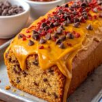 - Assemble: Pour the peanut butter glaze evenly over the cooled banana bread. Top with candied bacon pieces and additional chocolate chips if desired. Slice, serve, and enjoy your decadent treat!
