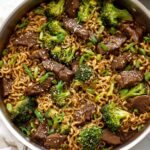 A flavorful Beef and Broccoli Ramen recipe featuring tender marinated steak, fresh broccoli, and a savory homemade sauce, tossed with perfectly cooked ramen noodles. This stir fry dish combines beef broth, soy sauce, garlic, and a touch of honey for a balanced, delicious meal that's quick and easy to prepare.