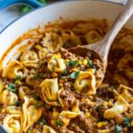- Combine Tortellini and Beef Mixture: Add the drained tortellini to the skillet. Gently stir to coat the pasta thoroughly with the cheesy beef sauce.