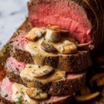 This Beef Tenderloin with Creamy Mushroom Sauce recipe offers a perfectly roasted center-cut beef tenderloin slathered in garlic-thyme butter and served with a rich, savory marsala mushroom sauce. Ideal for special occasions, this elegant dish features overnight salting for enhanced flavor and tender juiciness, complemented by a luscious sauce made with white mushrooms, marsala wine, and cream.