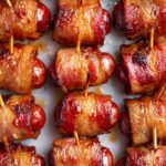 Brown Sugar Bacon Little Smokies are savory mini sausages wrapped in crispy bacon and coated with sweet brown sugar, baked to perfection for a delicious appetizer or party snack.