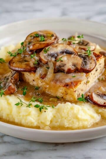 Creamy Sherry Tofu with Mushrooms and Mashed Potatoes Recipe