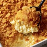 For that signature crunch, crush about 3 cups of corn flakes lightly by hand, then toss them with ½ cup of melted butter until every flake is coated. Spread this mixture evenly over the top of the potatoes. This buttery crust is the best texture contrast in the whole dish.