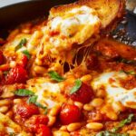 Pizza Beans is a comforting and easy one-skillet dish featuring blistered cherry tomatoes, cannellini beans simmered in a flavorful tomato sauce, and a bubbly, golden cheese topping. Served warm with crusty bread, it's a perfect vegetarian meal for any day of the week.