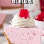 - Slice and garnish: Once chilled, slice the pie into 8 slices. Use a decorator’s bag or a quart-size ziplock bag with a corner snipped off to pipe the extra Cool Whip in swirls at the edge of each slice. Place 1 maraschino cherry on top of each swirl.