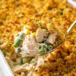 A comforting Chicken and Stuffing Casserole featuring tender shredded chicken, creamy soup and sour cream base, mixed vegetables, and a crispy bedding of savory stuffing on top. Perfect for a hearty family dinner, this casserole is baked to golden perfection with minimal prep time.