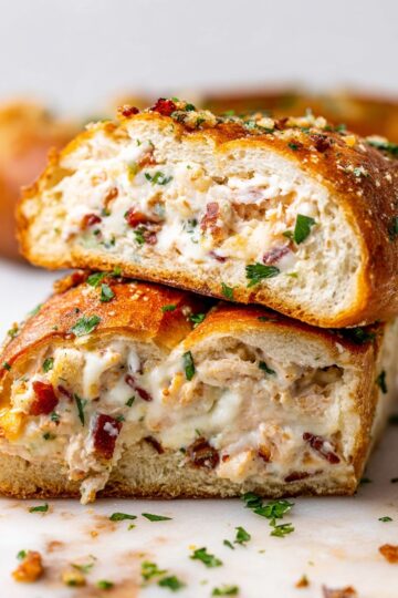 Making this Chicken Bacon Ranch Stromboli is like wrapping up all your favorite comfort foods into one delicious bundle. It’s easy, satisfying, and always a crowd-pleaser whether you’re feeding family on a busy weeknight or hosting game day. I hope you love how the crispy bacon, tender chicken, creamy ranch, and gooey mozzarella come together in that golden crust just as much as I do. Dig in, enjoy every bite, and don’t forget to keep that extra ranch dressing handy for dipping!