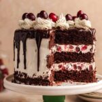 - Assemble Cake: Place one cake layer upside down on a serving stand. Brush generously with cherry syrup, spread a thick layer of whipped cream, then add one-third of chopped cherries gently pressed into cream. Drizzle 2 to 3 tablespoons ganache over cherries. Repeat with next two layers.