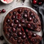 A rich and moist Chocolate Cherry Cake featuring ground almonds and cocoa powder, studded with fresh or frozen cherries and topped with a glossy cherry jam glaze. Perfect served slightly warm with thick whipped cream, blending deep chocolate flavors with the tartness of cherries for a delightful dessert experience.