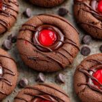 This Chocolate Cherry Cookies recipe combines rich cocoa and semi-sweet chocolate with a burst of Maraschino cherries, topped with a luscious chocolate ganache and a decorative chocolate drizzle. These soft, chewy cookies are perfect for chocolate lovers seeking a fruity twist in every bite.