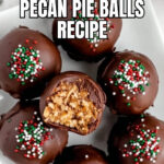 Delicious no-bake Pecan Pie Balls featuring a rich pecan and graham cracker filling dipped in smooth melted chocolate, perfect for holiday treats or anytime snacking.
