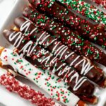 This Chocolate Covered Pretzel recipe features crunchy pretzel rods dipped in smooth semisweet chocolate with optional white almond bark drizzle and a variety of tasty toppings. Perfect for gifting or snacking, these treats combine salty and sweet flavors with delightful textures. Easy to make with simple ingredients, these chocolate dipped pretzels set at room temperature without the need for refrigeration, ensuring a glossy finish and a satisfying snap.