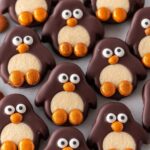 Peanut Butter Penguins are adorable and festive no-bake treats made by coating Nutter Butter cookies in a decadent dark chocolate and peanut butter mixture, then decorated with mini Nilla wafers, Reese’s pieces, and candy eyes to resemble penguins. Perfect for holiday parties or fun family desserts.