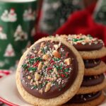 - Decorate Cookies: Spoon melted chocolate onto cooled cookies, spreading to cover most of the top. Sprinkle with toasted pecan pieces, extra toffee bits, and holiday sprinkles.