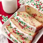 This Christmas Bread is a festive, colorful quick bread filled with cheerful sprinkles and topped with a smooth vanilla glaze. Perfect for holiday gatherings, this soft and moist loaf combines buttery richness with a hint of cinnamon, making it a delightful treat for the season.