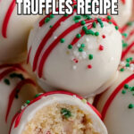 Delight in these festive Christmas Tree Cake Truffles made from Little Debbie Christmas Tree Cakes, coated in smooth white chocolate, decorated with red candy melt drizzle and green sanding sugar for a perfect holiday treat.