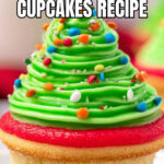 These festive Christmas Tree Cupcakes are a delightful holiday treat featuring moist vanilla cupcakes topped with green buttercream frosting piped into a tree shape, decorated with colorful sprinkles and Twizzler candy garlands to resemble a Christmas tree. Perfect for holiday parties and family gatherings.