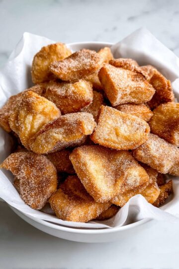 Cinnamon Sugar Biscuit Bites are bite-sized treats made from canned biscuit dough, coated in melted butter and cinnamon sugar. They are quick to prepare and deliver a delightful sweet flavor and flaky texture reminiscent of cinnamon-sugar doughnuts, perfect for breakfast or a snack.