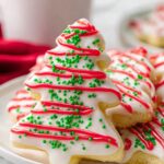 Delight in these festive Copycat Little Debbie Christmas Tree Cakes, featuring layers of moist yellow cake filled with fluffy marshmallow buttercream, coated in smooth white almond bark, and decorated with green sanding sugar and red candy melt accents. Perfect for holiday celebrations and treating loved ones.
