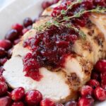 This Cranberry Glazed Turkey Breast recipe features a flavorful brined and spice-rubbed turkey breast roasted to juicy perfection and finished with a tangy-sweet cranberry glaze. Perfect for holiday dinners or any special occasion, the turkey is tender and moist with a spicy-sweet crust complemented by fresh cranberry glaze that can also be served on the side.
