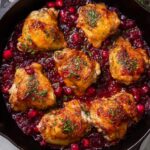 A flavorful and juicy Cranberry Orange Chicken recipe featuring tender chicken thighs cooked in a vibrant cranberry orange sauce with hints of maple syrup, brown sugar, and garlic. Perfect for a delicious and colorful main course.