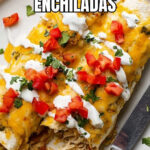 Cream cheese chicken enchiladas feature tender shredded chicken enveloped in a creamy, tangy sauce made with cream cheese, salsa verde, and green chiles, all wrapped in warm flour tortillas and baked with melted Mexican blend cheese. This easy and freezer-friendly meal is ready in under an hour, making it perfect for weeknight dinners or meal prep.