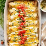 Cream cheese chicken enchiladas feature tender shredded chicken enveloped in a creamy, tangy sauce made with cream cheese, salsa verde, and green chiles, all wrapped in warm flour tortillas and baked with melted Mexican blend cheese. This easy and freezer-friendly meal is ready in under an hour, making it perfect for weeknight dinners or meal prep.