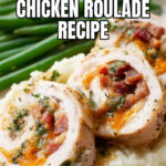 Delicious Chicken Roulade stuffed with crispy bacon, steamed broccoli, and a blend of cheddar and Parmesan cheeses. This elegant main course features tender, pounded chicken breasts rolled with savory filling, seared to a golden crust, and finished in the oven for perfect tenderness. Ideal for a comforting dinner served with mashed potatoes and green beans.