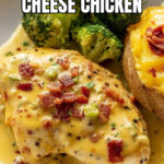 - Serve: Garnish with crumbled cooked bacon strips if using and serve the cheesy chicken with baked potatoes or your preferred side.