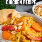 A rich and creamy Slow Cooker Coconut Curry Chicken featuring tender chicken thighs cooked with vegetables in a fragrant blend of coconut milk, red curry paste, and warm spices. Perfect for an easy, comforting Asian-inspired main dish served over rice and garnished with crunchy roasted peanuts.