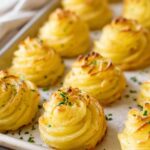 This Best Duchess Potatoes recipe features creamy, buttery mashed Yukon gold potatoes blended with garlic, Parmesan cheese, and egg yolks, then elegantly piped into swirled mounds and baked to golden perfection. These classic, elegant side dish potatoes make a perfect accompaniment for a holiday feast or any special dinner.