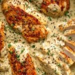 This creamy ranch chicken recipe features tender, golden-brown chicken breasts smothered in a rich ranch-seasoned sauce made with chicken broth, sour cream, and aromatic spices. Perfect for an easy and comforting dinner, it combines simple ingredients with a luscious, flavorful sauce that can be served straight from the stovetop, garnished with fresh parsley.