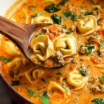 A rich and creamy sausage tortellini soup featuring tender Italian sausage, aromatic vegetables, and cheese tortellini in a flavorful broth thickened with cream and Parmesan rind. Perfect for a comforting and hearty meal.