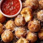 These Air Fryer Cacio E Pepe Arancini are crispy, cheesy risotto balls with a gooey mozzarella center, perfectly seasoned with Pecorino Romano and black pepper. Air-fried to golden perfection, they make a delicious appetizer or snack served alongside marinara and pesto sauces.