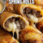 Delicious Cheeseburger Spring Rolls combine seasoned ground beef, tangy pickles, and melted cheese wrapped in crispy spring roll wrappers. Perfectly fried or air-fried, these spring rolls are a fun twist on classic cheeseburgers, served with flavorful dipping sauces.