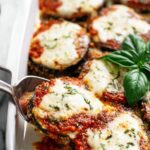 - Assemble and Bake: Spread about 1/3 cup marinara sauce evenly on the bottom of a 9 x 13-inch baking dish. Layer one-third of the fried eggplant slices, then spoon marinara sauce over them, followed by one-third of the combined mozzarella and parmesan cheese. Repeat the layering two more times to create three total layers of eggplant, sauce, and cheese. Bake uncovered at 375° F for 25-30 minutes until the top is hot and bubbly. Optionally, broil at 450° F for a few minutes to brown the top, watching carefully to avoid burning.