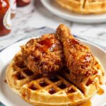 - Serve: Place fried chicken pieces on top of warm waffles. Drizzle generously with the cinnamon maple syrup and serve immediately for the best flavor and texture experience.