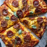 This Crispy Tomato Herb Cheese Pan Pizza features a crunchy crust baked in a cast iron skillet, topped with a blend of herbs, melted provolone and mozzarella, tangy marinara sauce, and optional pepperoni for a perfect homemade pizza experience.