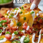 Once the cheese is bubbling and melty, take your masterpiece out of the oven. Top it with fresh, diced garnishes: 1 large seeded jalapeno, 2 diced Roma tomatoes, ¼ cup sour cream dolloped over, 1 diced shallot, and 2 green onions. Serve immediately while it’s hot and enjoy the perfect balance of crispy, cheesy, smoky, and fresh flavors in every bite.