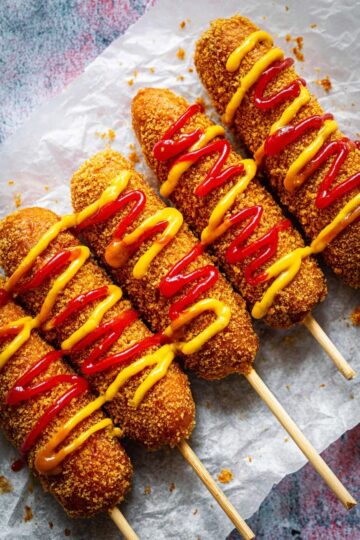 - Coat corn dogs thoroughly with batter and panko to avoid holes in the crust for maximum crispiness.