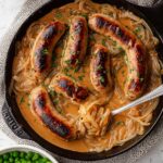 - Finish the dish: Return the browned sausages to the pan, coating them in the onion gravy. Simmer for a few more minutes until the sausages are heated through. Taste the gravy and season with salt and pepper as needed.