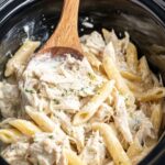 - Shred the chicken: Once the pasta is cooked, gently remove the chicken breasts, shred them with two forks, and return the shredded chicken to the crockpot.