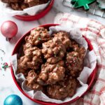 - Shape Clusters: Drop the mixture by rounded spoonfuls onto baking sheets lined with parchment paper. If desired, decorate the clusters immediately with festive sprinkles before the chocolate hardens.