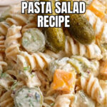 Store any leftover salad in an airtight container in the fridge for 3 to 4 days. When you dig it out again, give it a good stir because the dressing may settle or absorb into the pasta. If it tastes a little dry, a splash of pickle juice or a spoonful of sour cream refreshes that creamy texture.
