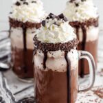Start by pouring a tablespoon of chocolate syrup onto a small plate. Then, take your glass or mug and carefully dip the rim upside down into the syrup so it’s nicely coated. Quickly follow that by dipping the rim into a tray of chocolate sprinkles, pressing gently so the sprinkles stick. This step adds a beautiful, fun edge that looks so inviting and tastes fantastic with every sip.