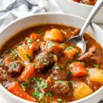A hearty and comforting Crock Pot beef stew made with tender chunks of beef chuck roast, potatoes, carrots, celery, onions, and a savory tomato-based gravy. Slow-cooked to perfection, this classic stew is perfect for a cozy meal and can be prepped ahead or frozen for convenience.