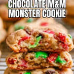 These festive Christmas Monster Cookies are packed with holiday cheer featuring creamy peanut butter, oats, chocolate chips, and colorful red and green M&M's. Soft, chewy, and perfect for holiday gatherings, these cookies combine classic flavors with a fun seasonal twist.