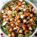 A festive and flavorful Christmas Pasta Salad featuring roasted cinnamon-spiced sweet potatoes, holiday-shaped pasta, crisp apples, creamy white cheddar, dried cranberries, crunchy walnuts, and peppery arugula, all tossed in a tangy maple-balsamic dressing. Perfect for holiday gatherings or as a vibrant side dish.